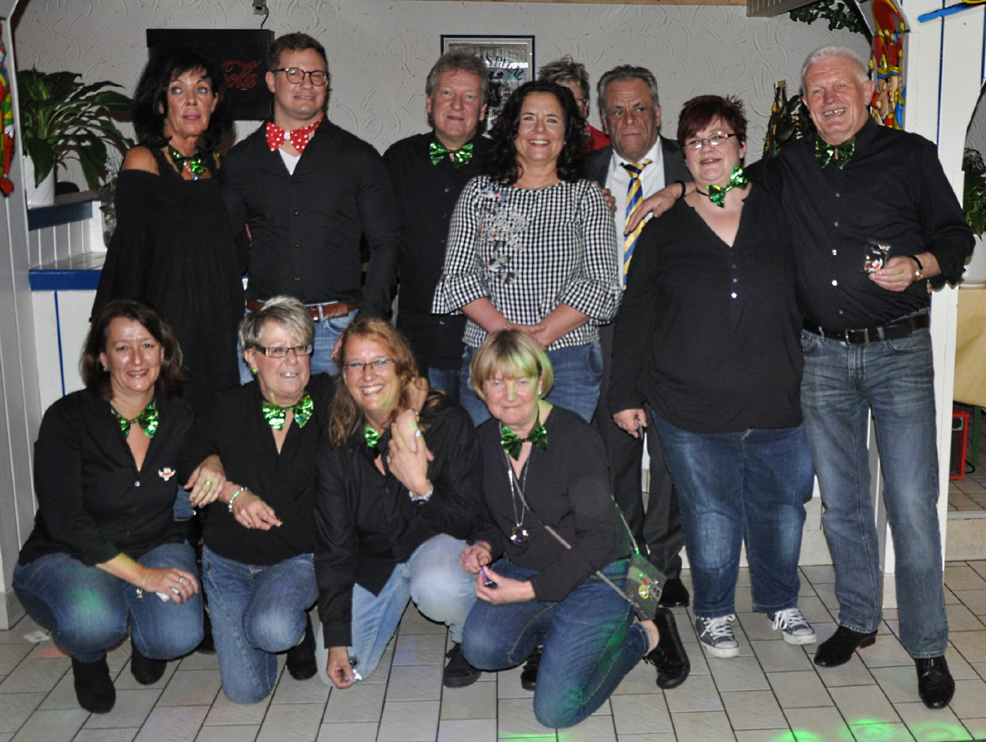 Vorne v.L.n.R Uschi Wirtz, Martina Förster, Petra Genn, Christa Mertgen. Hinten v.L.n.R Gudrun Klasen, Stefan Förster, Max Rother, Doris Mahlberg, Wolfgang Mertgen, Fine Bohne, Paul Förster.